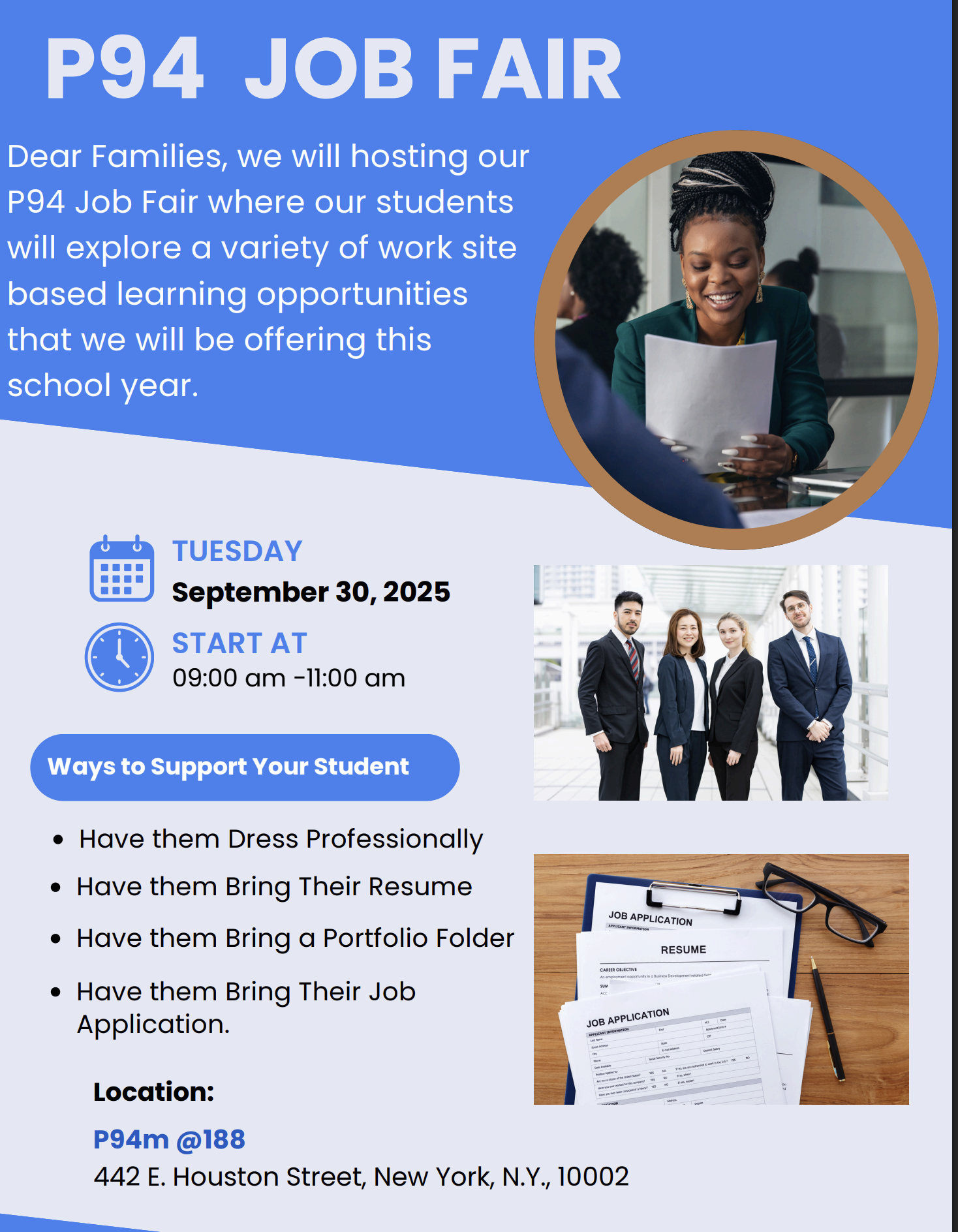 To help your student prepare, please encourage them to dress professionally and bring a folder to school on Tuesday. Please reach out to Ian Feldman, Work-Based Learning Coordinator at [email protected], if you have any questions.