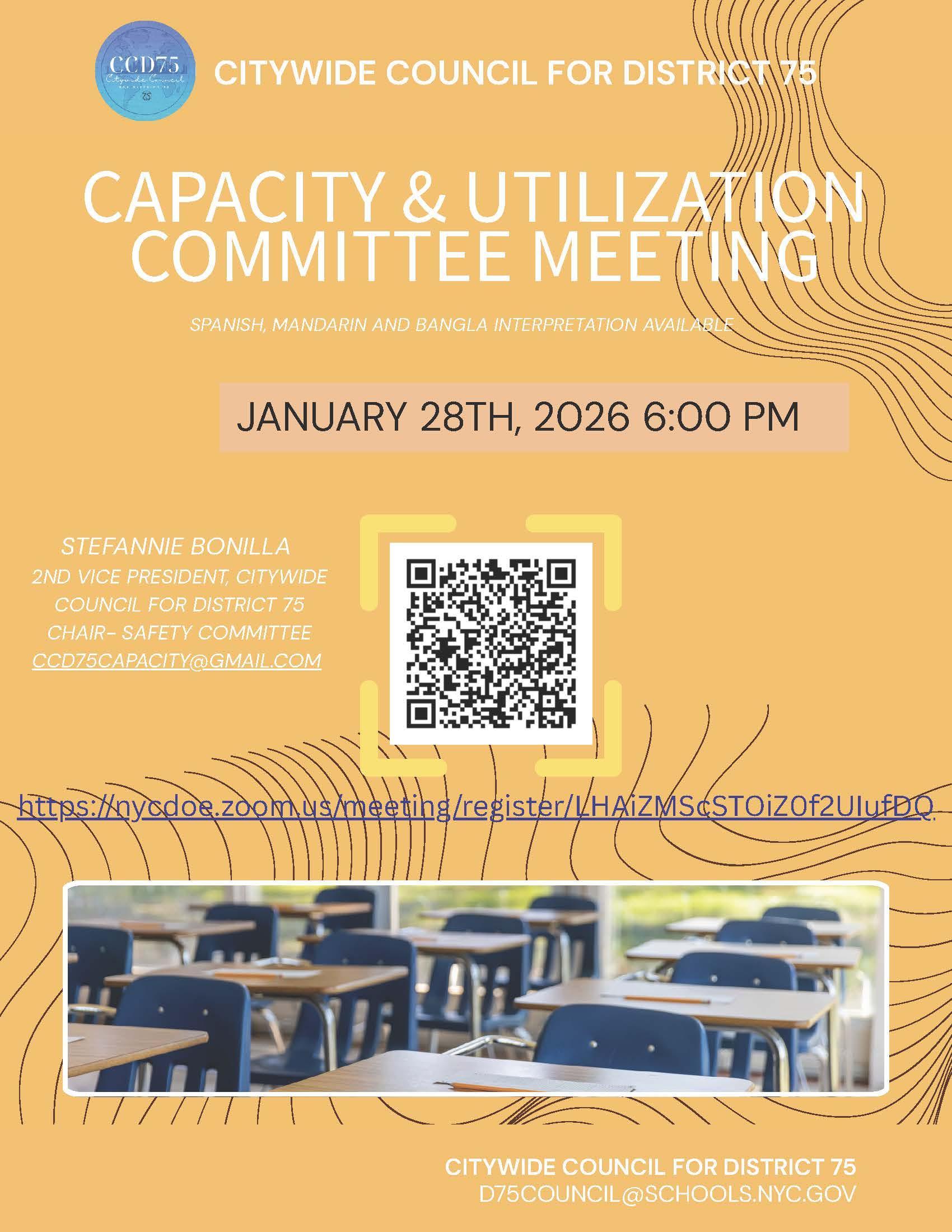 Join the Citywide Council for District 75 at their Capacity & Utilization Committee Meeting