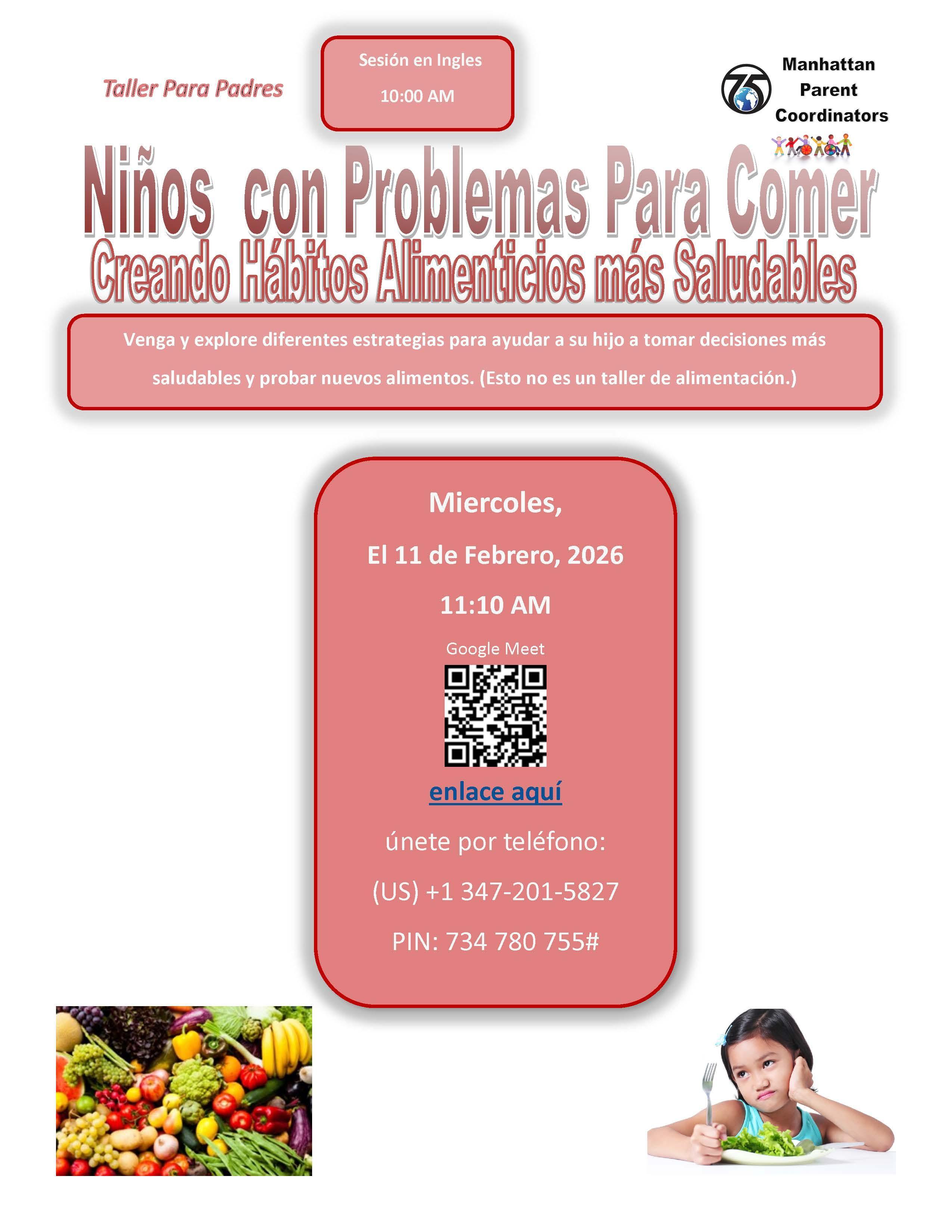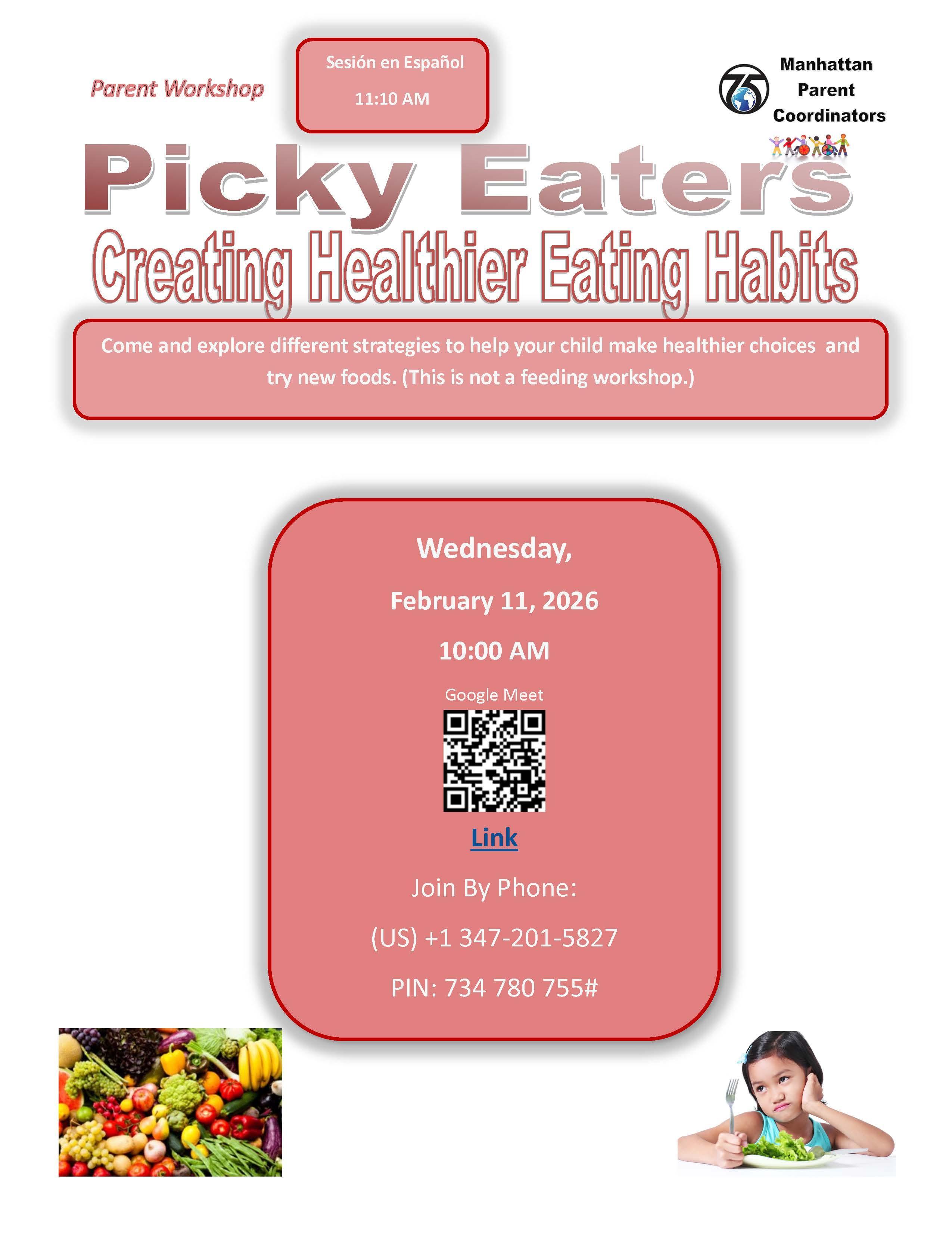 Next Manhattan D75 PC Workshop: Picky Eaters: Creating Healthier Eating Habits. February 11th at 10 AM (11:10AM For Spanish):