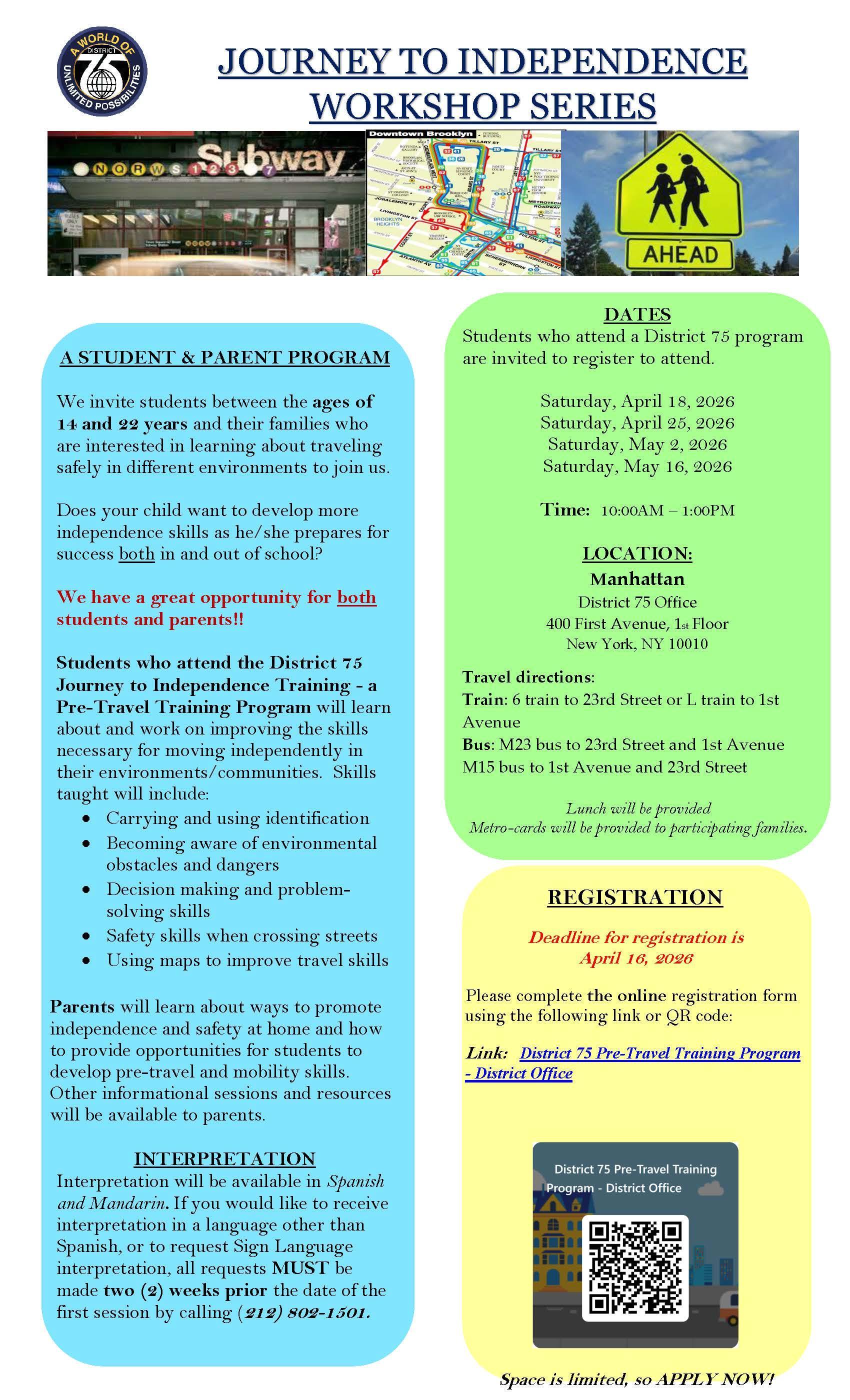 πWhere? District 75 Office, 400 First Avenue, 1st Floor, NY, NY. Register!