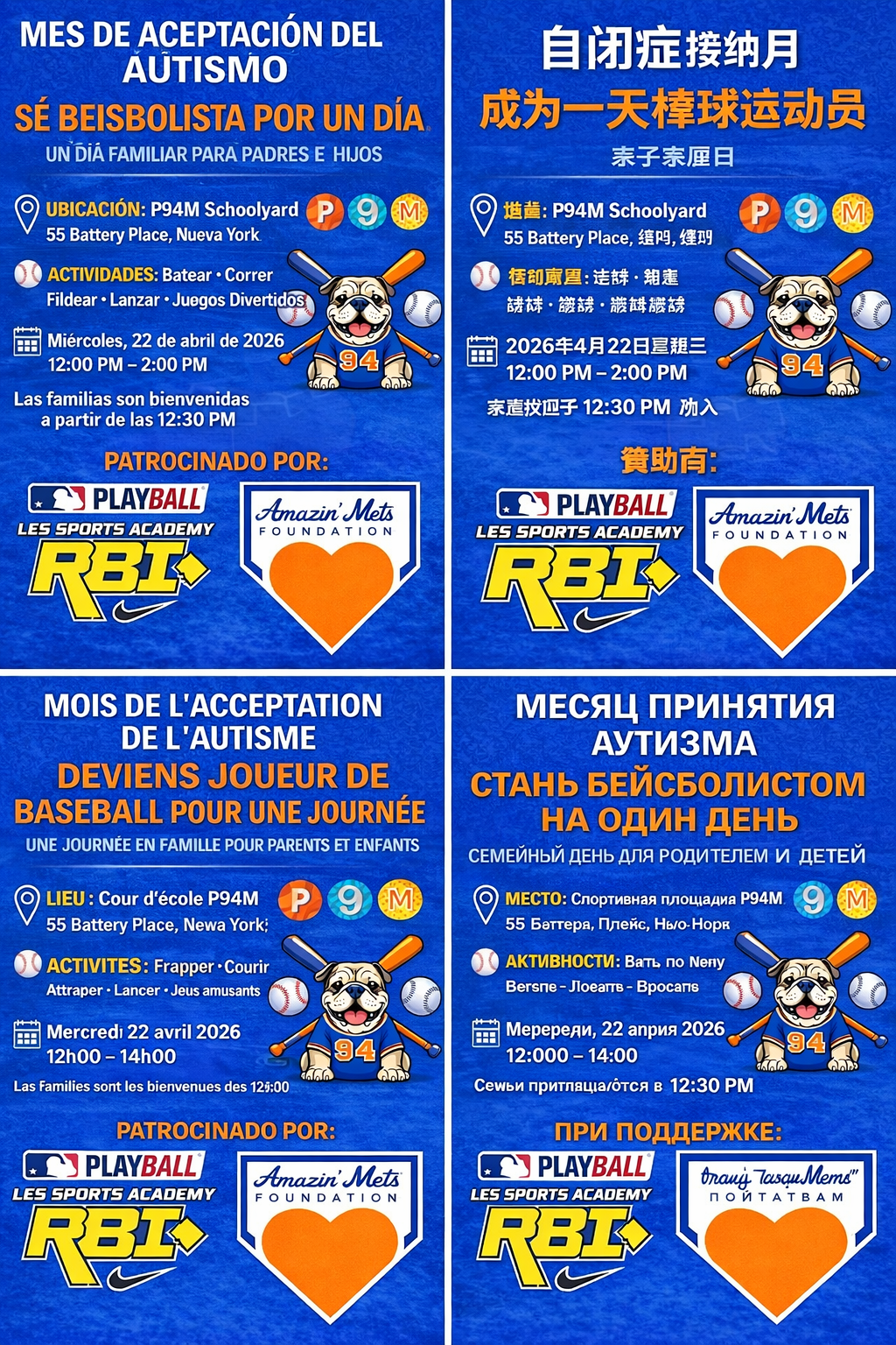 Students, staff, and families will practice hitting, running, fielding, and throwing as well as play some fun games! P94M @ P276M families can join the fun at 12:30 pm! Thank you to our amazing sponsors for their support!