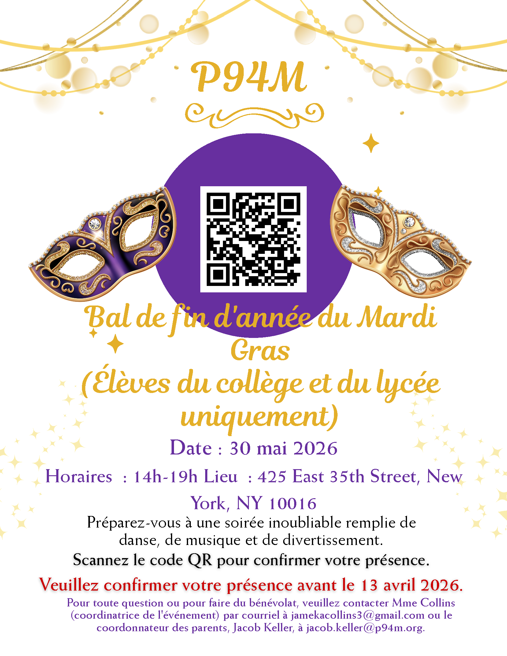 For any questions or to volunteer, email Ms. Collins, Event Coordinator, at [email protected] or Jacob Keller, Parent Coordinator, at [email protected].